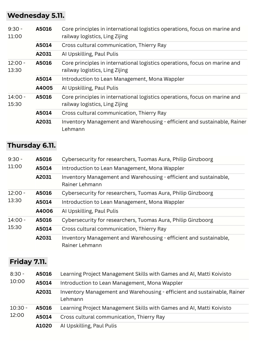 The international days will be organized on Xamk’s Kotka campus on 5 – 7 November 2025 by the Departments of Logistics, Cyber security, Game programming, Game technologies, Robotics and Energy technologies.
