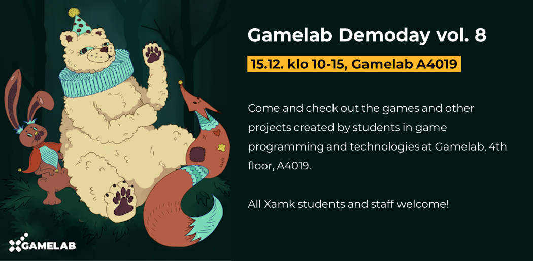 Come and explore the games and other projects created by Game programming and Game Technologies students at Xamk’s Kotka campus.