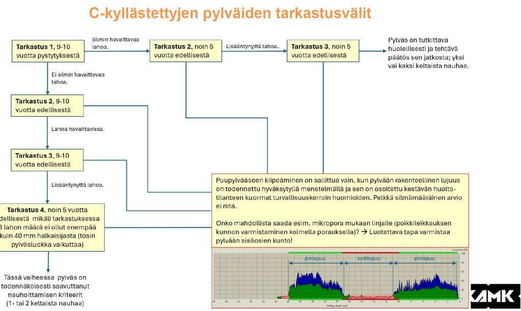 Kuva 7. Ehdotus C-kyllästettyjen pylväiden tarkastusaikaväleiksi.