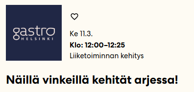 Puheenvuoro pidettiin Gastro Helsinki tapahtumassa Helsingin messukeskuksessa 11.3.2026.
