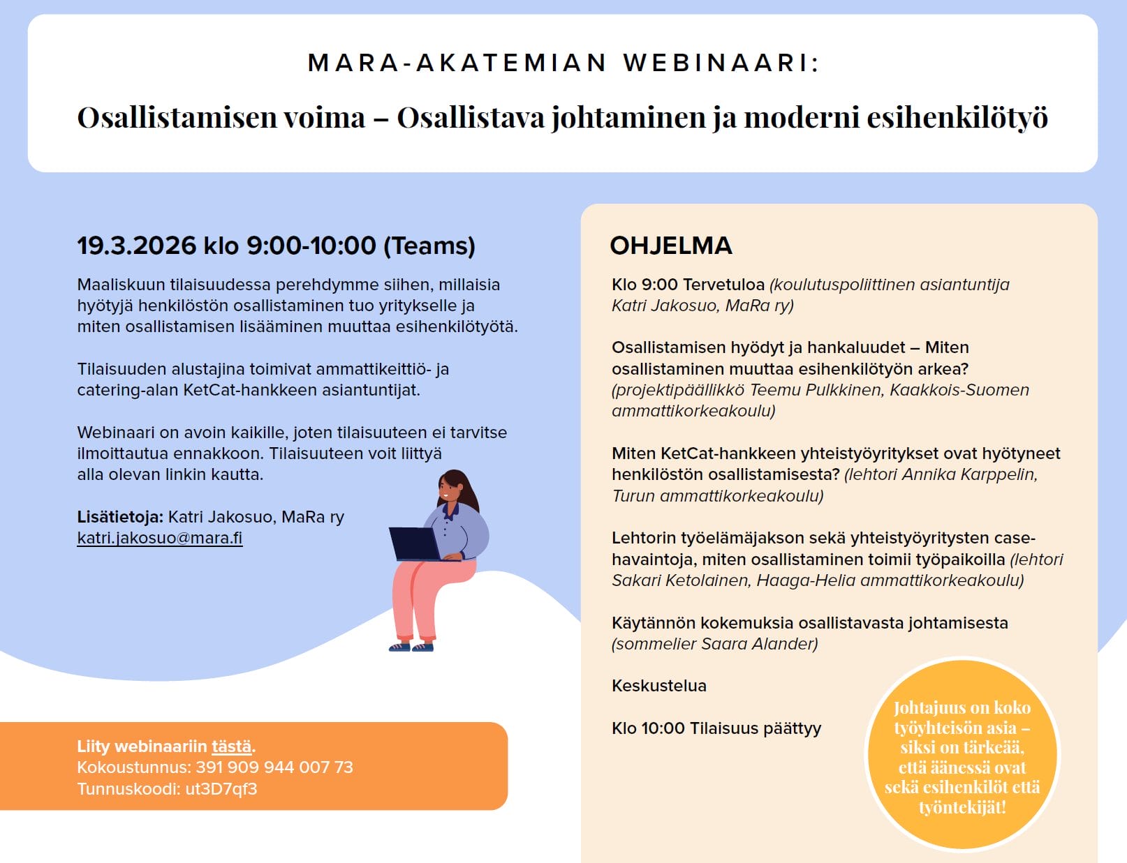 Mara-akatemian webinaari – Osallistamisen voima – Osallistava johtaminen ja moderni esihenkilötyö 19.3.2026