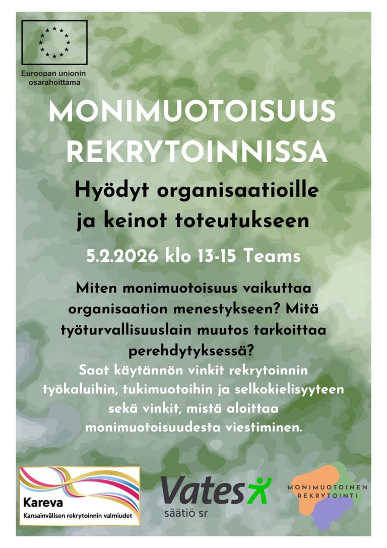 – Käytännön vinkkejä rekrytoinnin työkaluihin, tukimuotoihin ja selkokielisyyteen