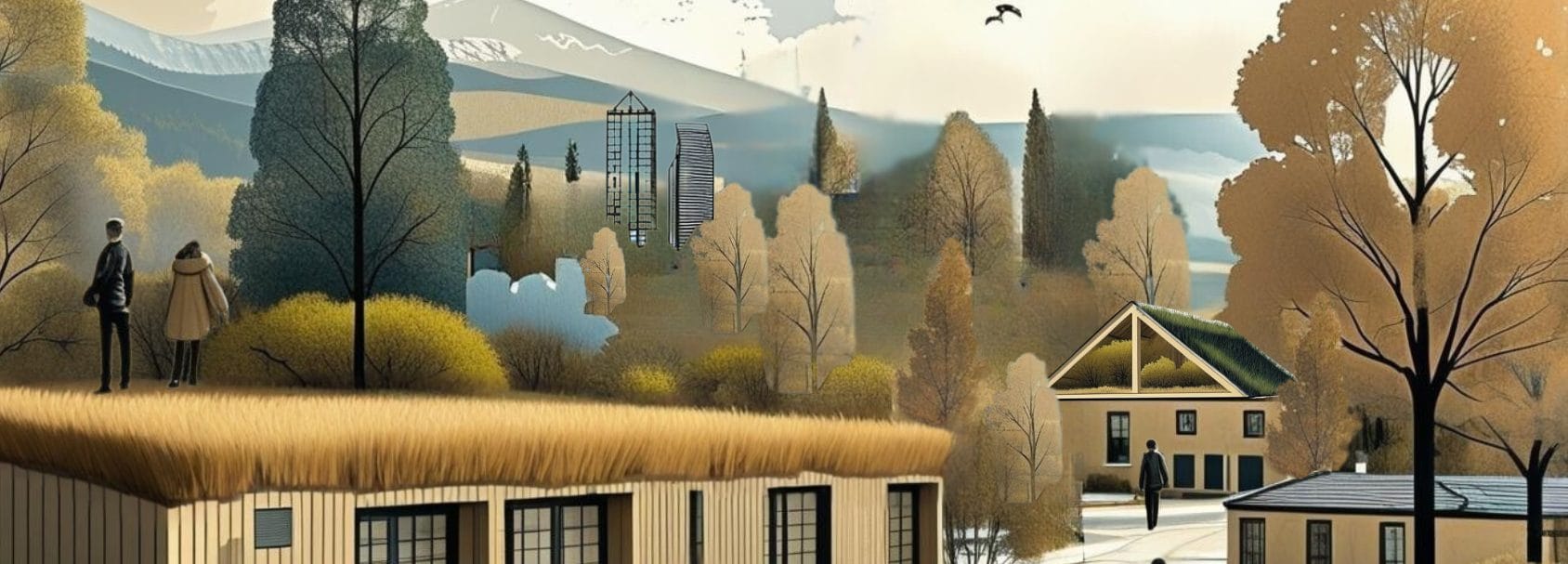 Kaupunkikehitystä, rakentamista, biomateriaaleja ja luovuutta.