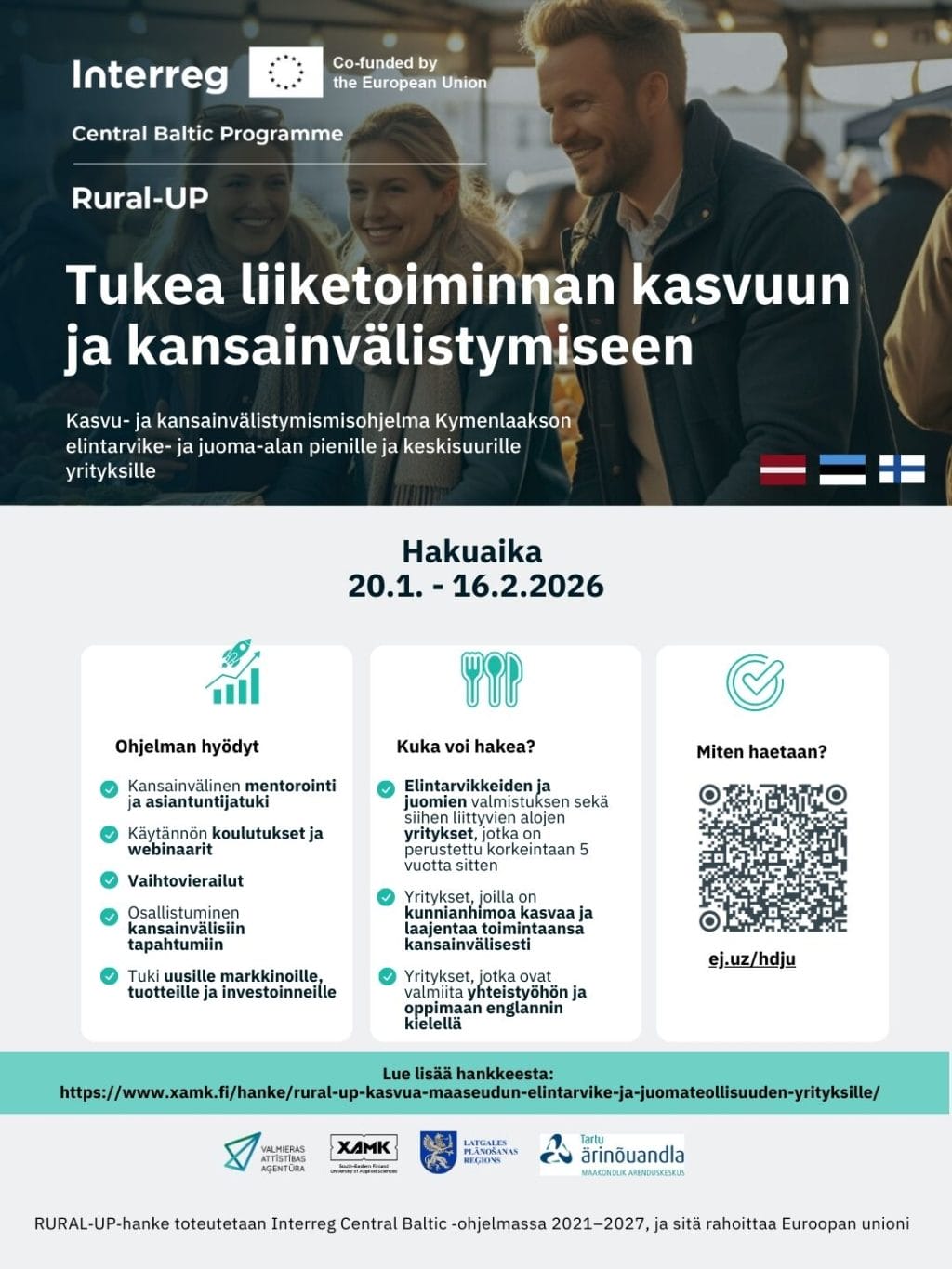 Rural-UP on kansainvälinen hanke, joka tukee maaseutualueiden yritysten kasvua ja kilpailukykyä Latviassa, Suomessa ja Virossa. Hanke keskittyy erityisesti pk-yritysten liiketoiminnan kehittämiseen, uusien markkinoiden tavoittamiseen ja kestävien ratkaisujen edistämiseen. Rural-UP hankkeen rahoittajana toimii Interreg Central Baltic Programme by the European Union.