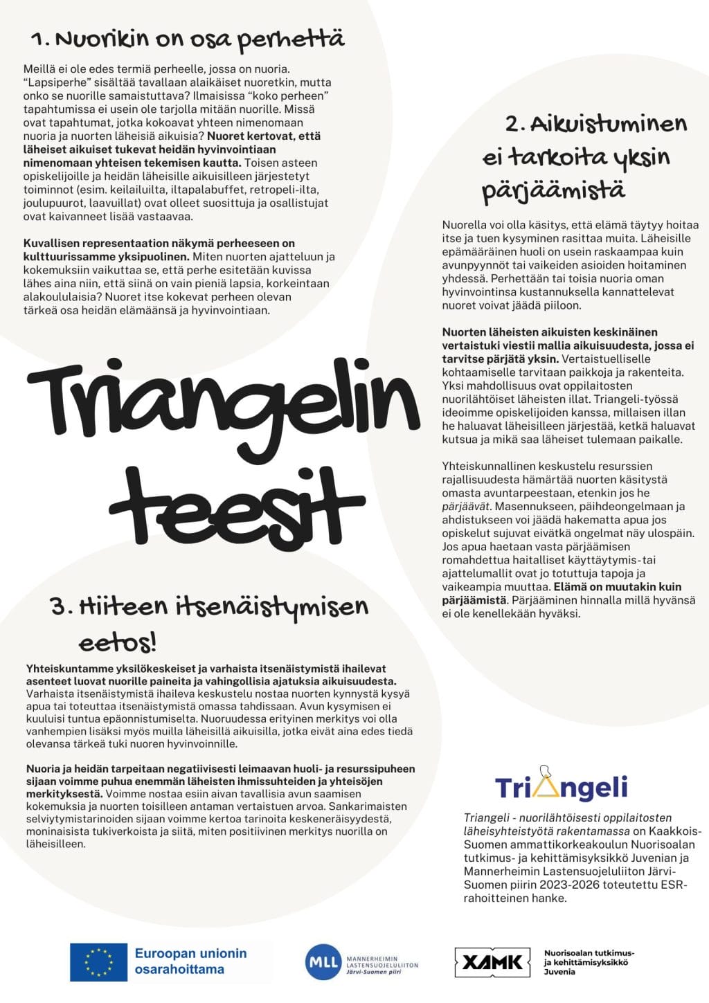 Triangelin tavoitteena on nuorten toisen asteen opiskelijoiden läheisiltään saaman ja vastaanottaman tuen lisääminen