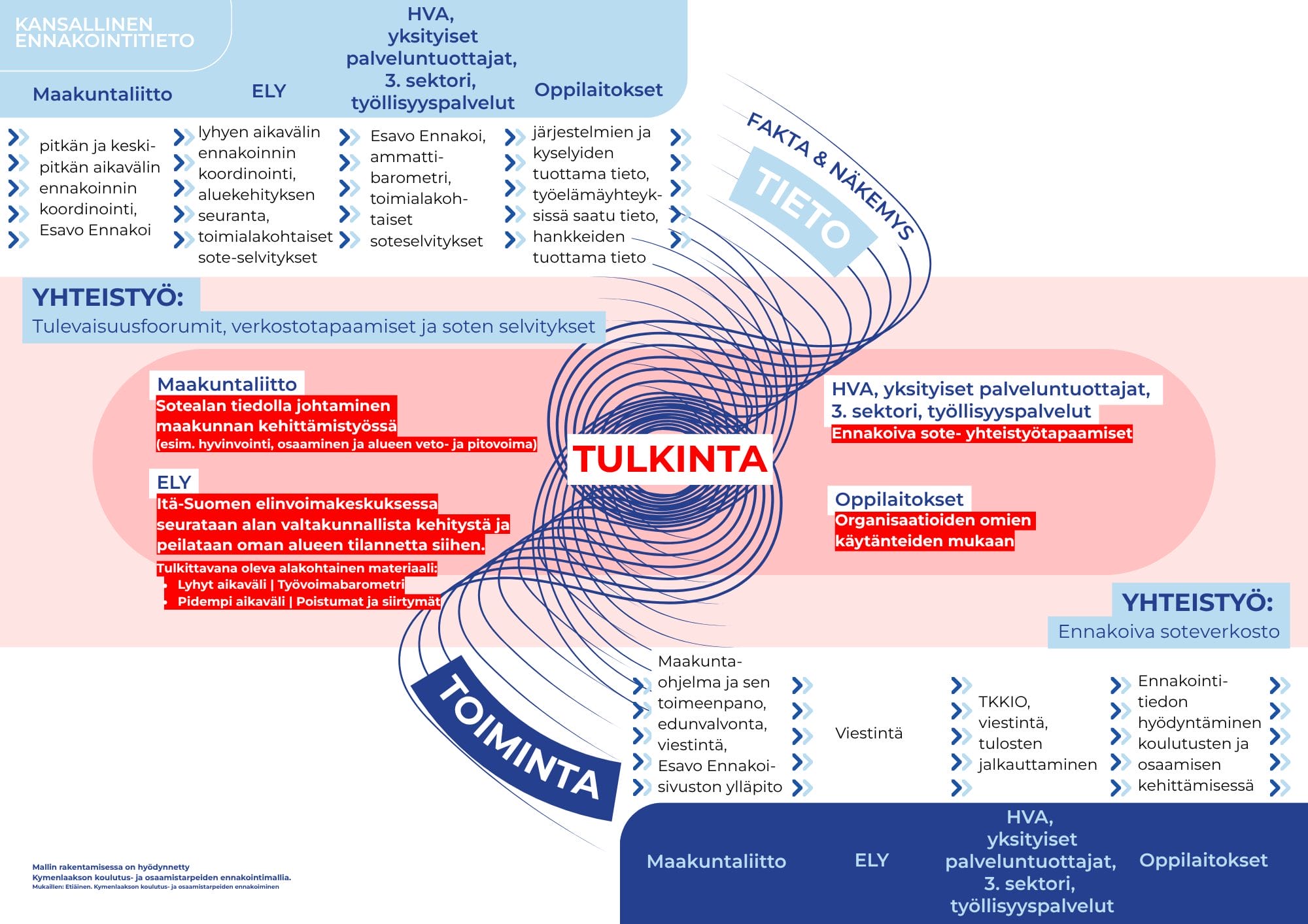 Ennakoiva sote- verkoston jäsenorganisaatiot: Etelä-Savon maakuntaliitto, Etelä-Savon ELY, Mikkelin ja Savonlinnan työllisyyspalvelut, Etelä-Savon ammattiopisto, Itä-Savon koulutuskuntayhtymä, Kaakkois-Suomen ammattikorkeakoulu, Etelä-Savon hyvinvointialue, Diakonia-ammattikorkeakoulu, Helsingin yliopisto (HY+), STEP-koulutus, 3 sektori (Etelä-Savon sosiaali- ja terveysturva ry)