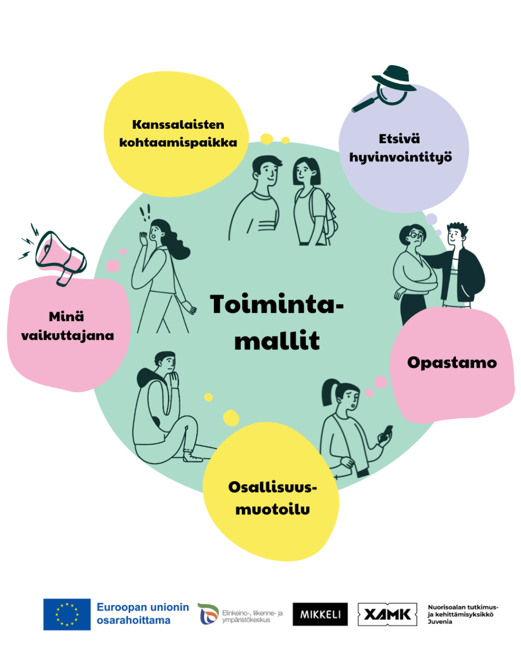 Materiaalit on koottu Yhdessä osallistuen -hankkeen aikana nuorten vaikuttamisosaamisen työpajojen ja nuorten omien projektien pohjalta.