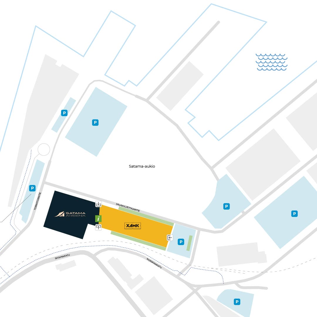 - Satama Areenan puoleinen pääovi on avoinna klo 17 asti.