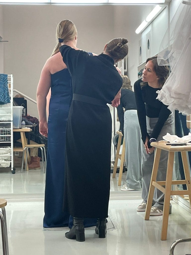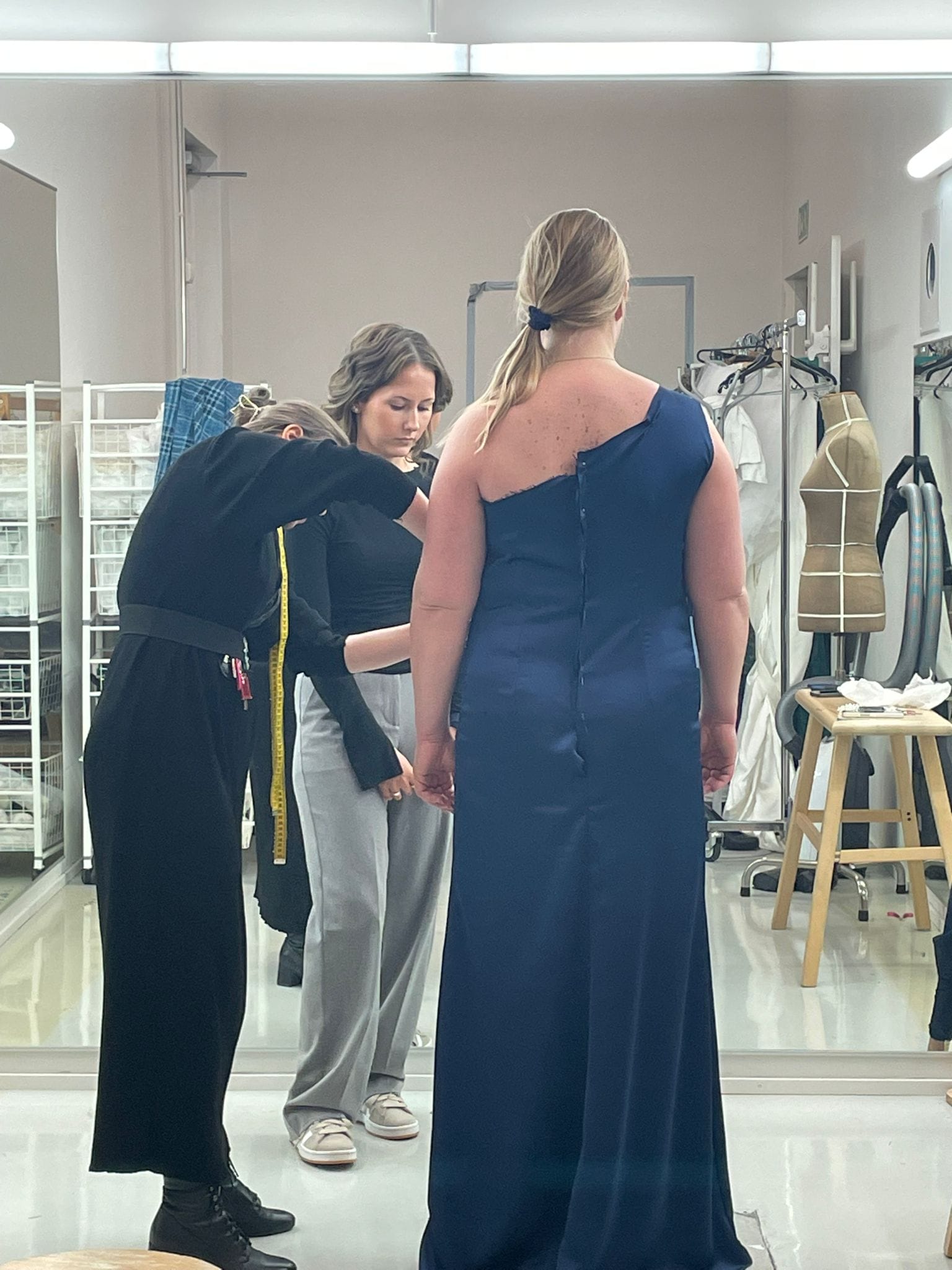Hänen työnsä viimeinen sovitus oli joulukuun 1. päivänä, jonka jälkeen mekko pääsi asiakkaan huomaan odottamaan h-hetkeä.