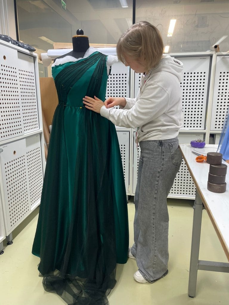 ”Puvun teosta oli sovittu jo ennen teeman julkistusta, mutta sen myötä opiskelijan tekemä puku oli entistä paremmin nappiin osunut valinta”, Mikkonen iloitsee.