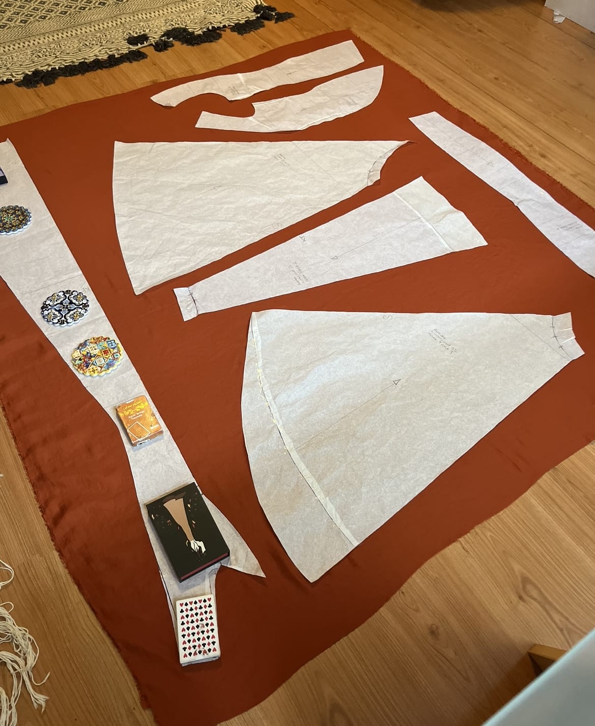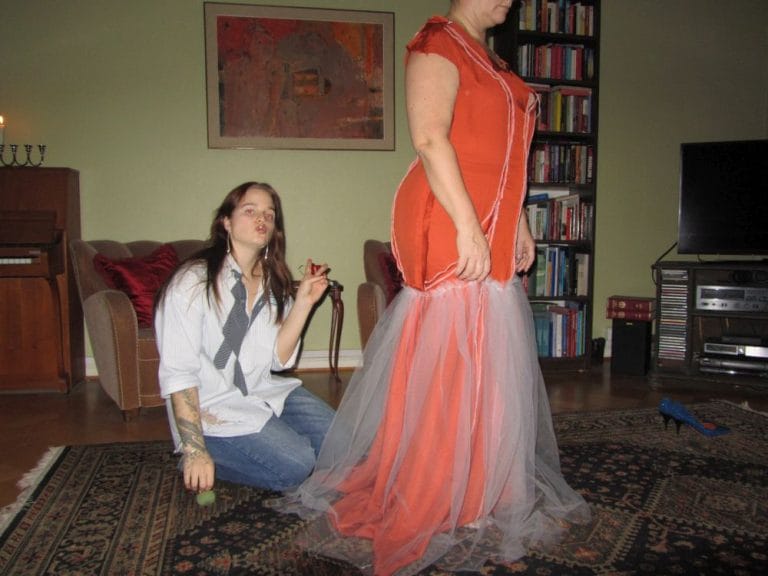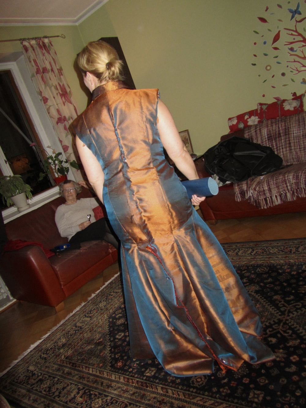 Miten pitkään juhlapuvun tekoon sitten kuluu aikaa? Anni kertoo, että puvun suunnittelu ja teko on aikaa vievä prosessi. Kaiken kaikkiaan hänellä aikaa on mennyt useita kymmeniä tunteja.