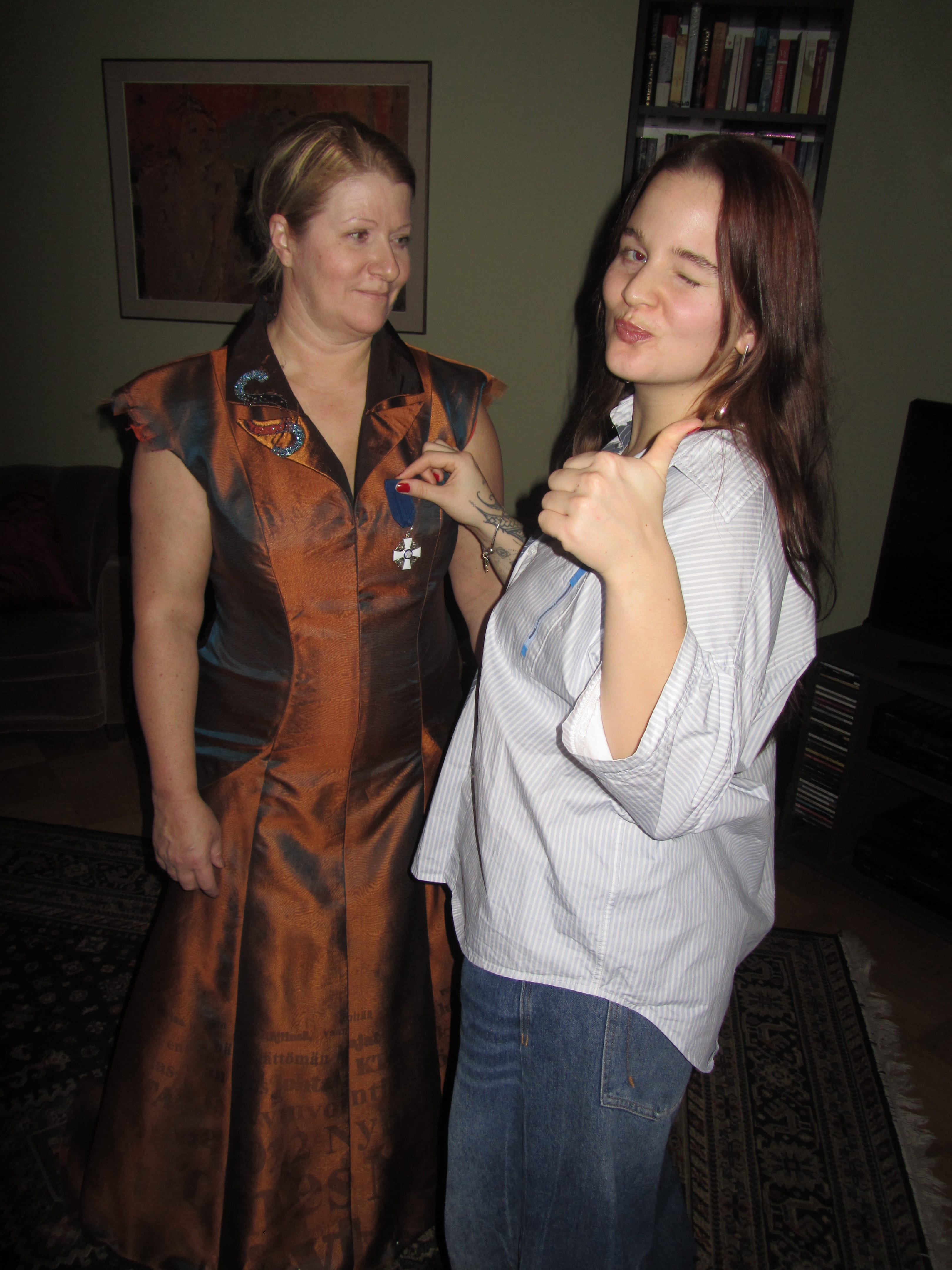 Kaikki kolme ovat yhtä mieltä myös siitä, että linnanjuhlapuvun teko on ollut mielenkiintoinen ja mukavan haastava tehtävä.