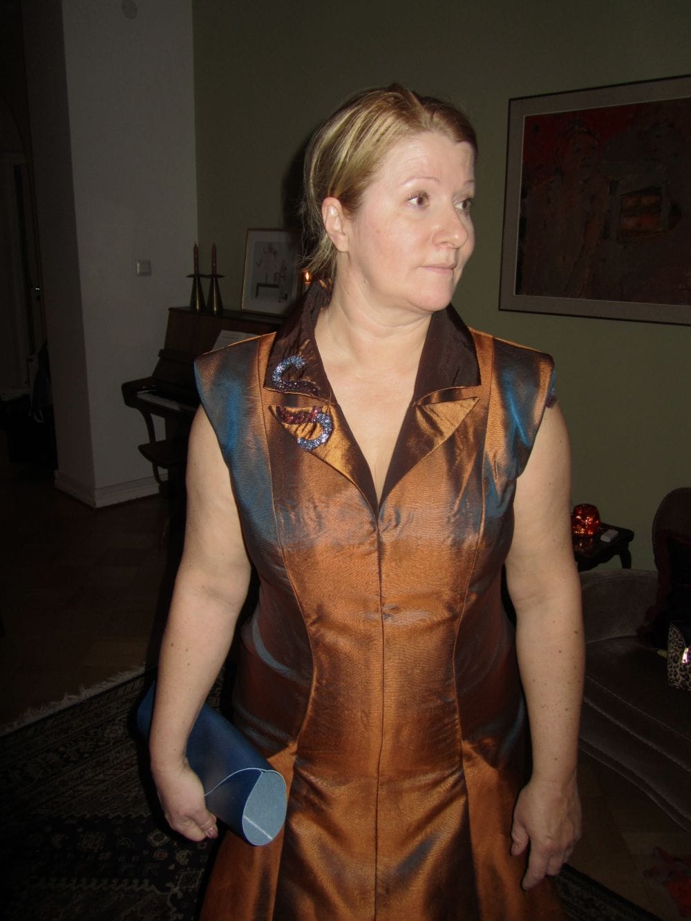 ”Äiti ilmoitti minulle kesällä, että haluaisi minun tekevän puvun. Kutsu ei ollut varma, eikä se tullut kuin vasta marraskuun keskivälissä. Jos kutsua ei olisi tullut, olisi pukua voinut käyttää ensi vuonna, jolloin kutsu olisi viimeistään tullut”, hän kertoo.
