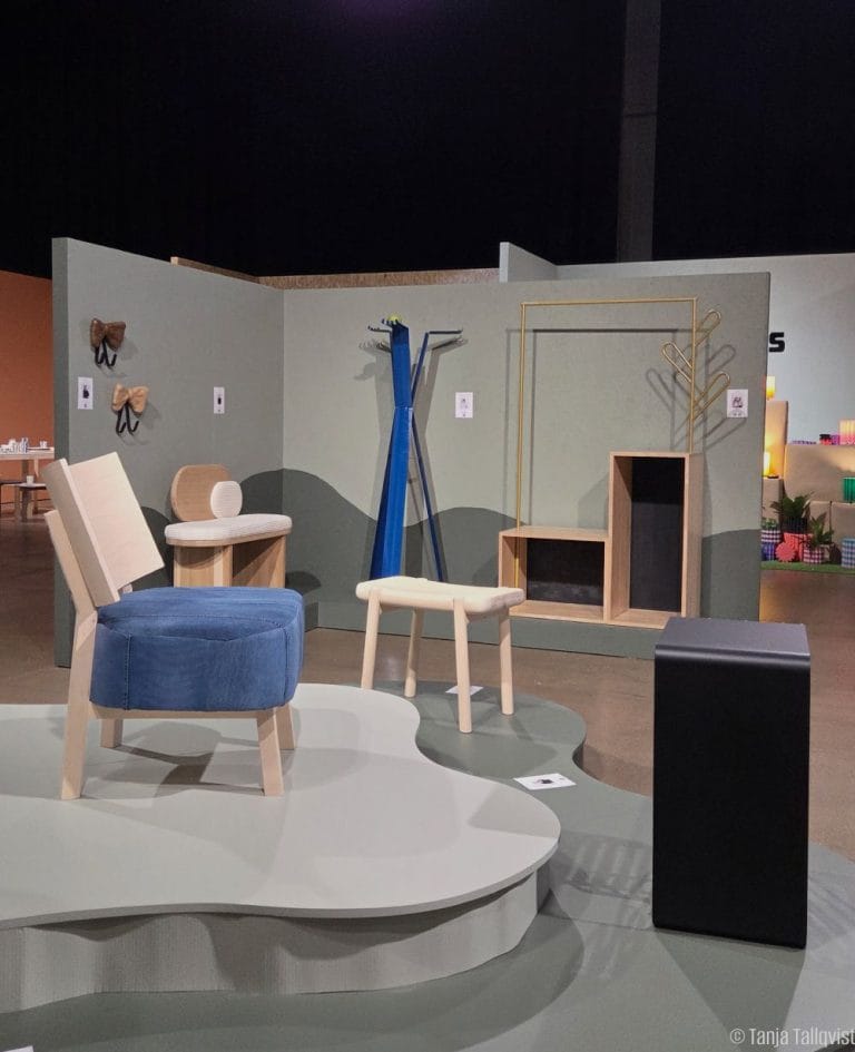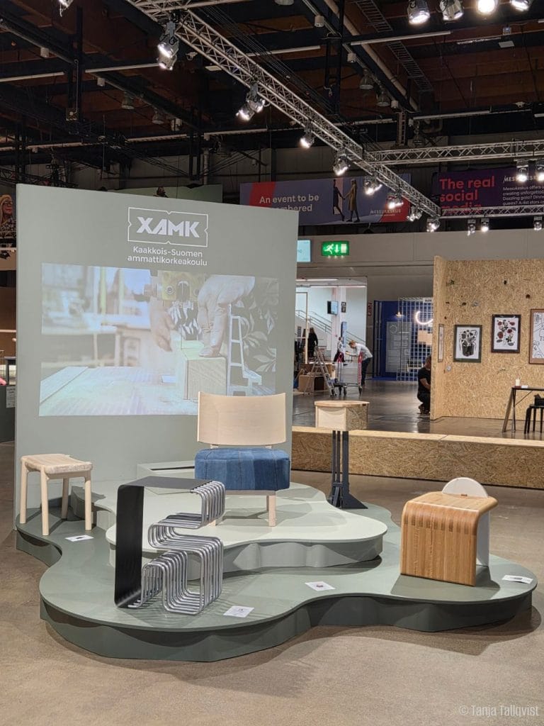 Sisustusarkkitehtuurin opiskelijoiden kädenjälki näkyi Habitare-messuilla syyskuussa 2025. Näytteillä oli kalusteita otsikolla Esikosketus.