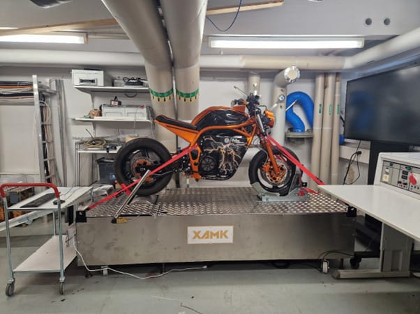Sähkö- ja automaatiotekniikan opiskelijat Santeri Filppu ja Riku Mustonen toteuttivat opinnäytetyönään inertiadynamometrin, eli tehopenkin, Xamkin sähkömoottoripyörälle. Laite mahdollistaa moottorin tehon ja vääntömomentin mittaamisen turvallisesti ilman tieliikennettä. Sähkömoottoripyörä on niin ikään tehty Xamkissa opinnäytetyönä vuonna 2022.