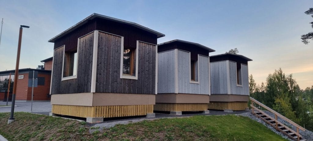 Xamkin testialustaan kuuluu kolme pientä testitaloa, joita voidaan modulaarisesti muokata palvelemaan erilaisia tutkimuksia.