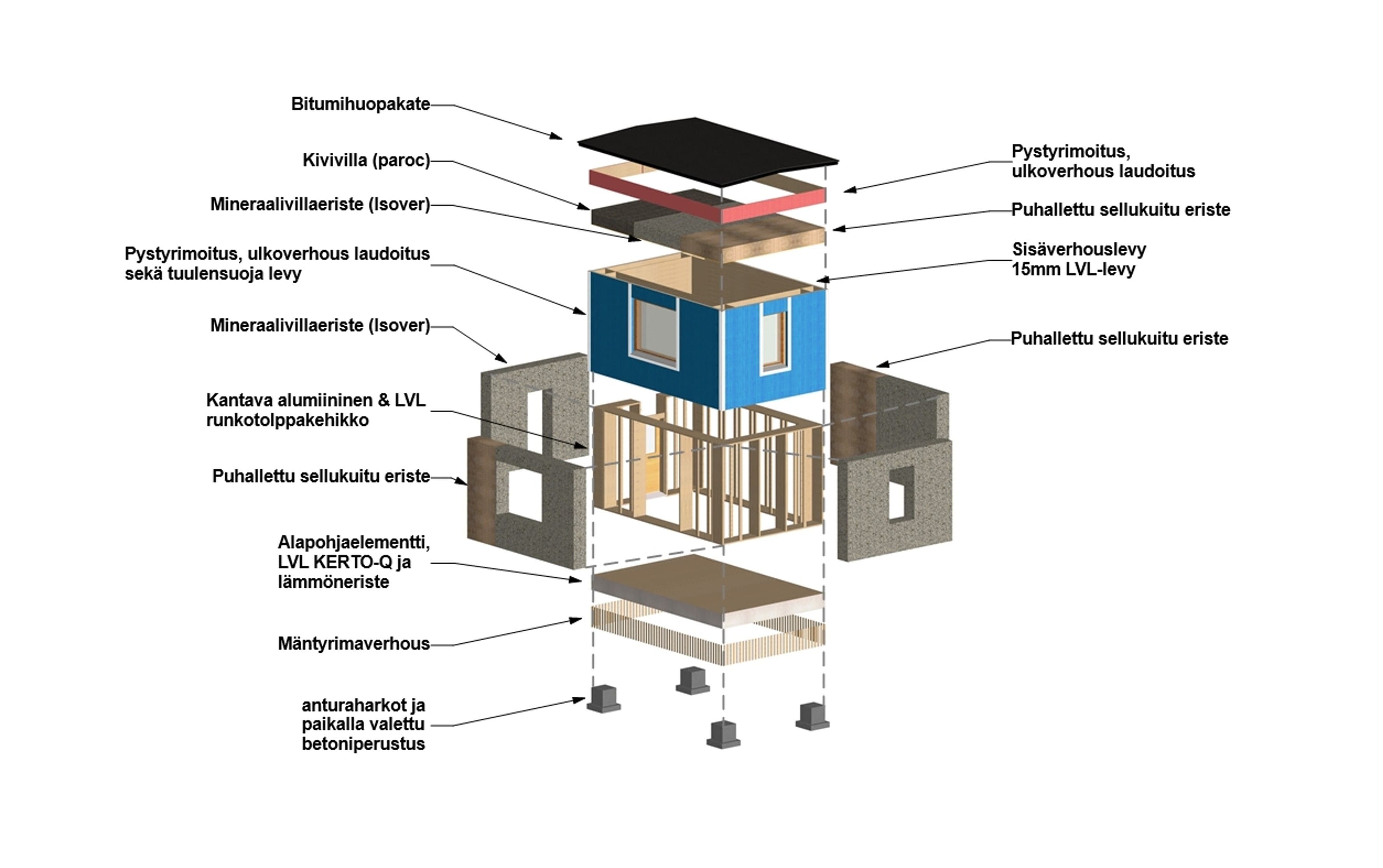 Xamkin puurakentamisen testialusta muodostuu kolmesta testiboxista sekä Puutiko-testitalosta Savonlinnassa.