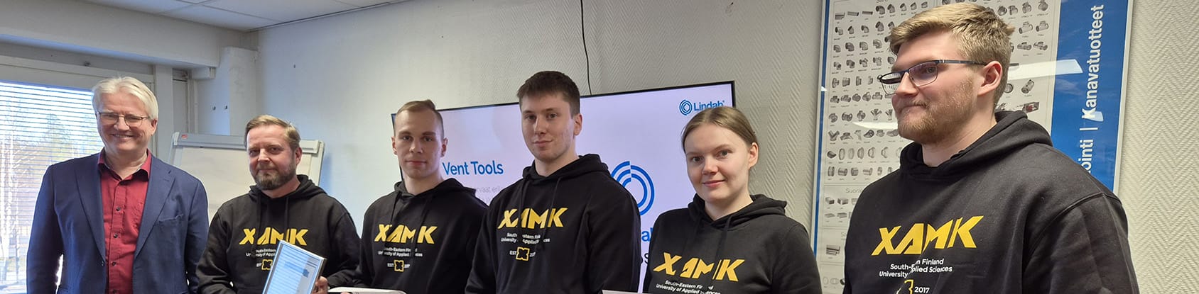 Xamkista kilpailuun osallistuivat talotekniikan koulutuksesta 3. vuoden opiskelijat Diari Naamo, Saana Pietilä, Mikko von Plato ja Eetu Sankari.